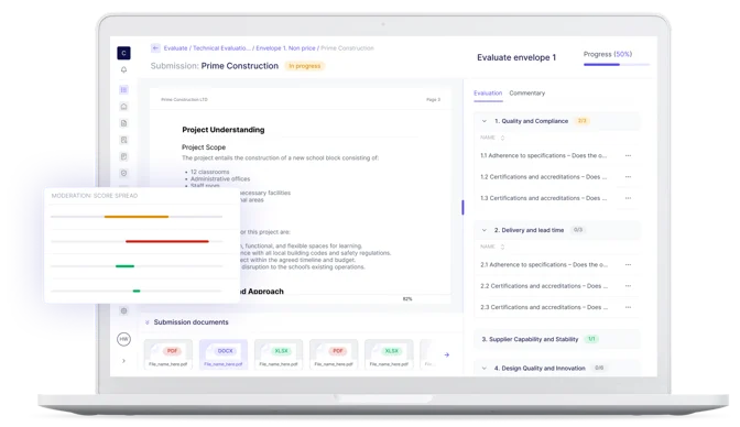 Evaluators only see what they need. Permissions follow procurement logic, not IT defaults, keeping the process secure and focused from start to finish.
